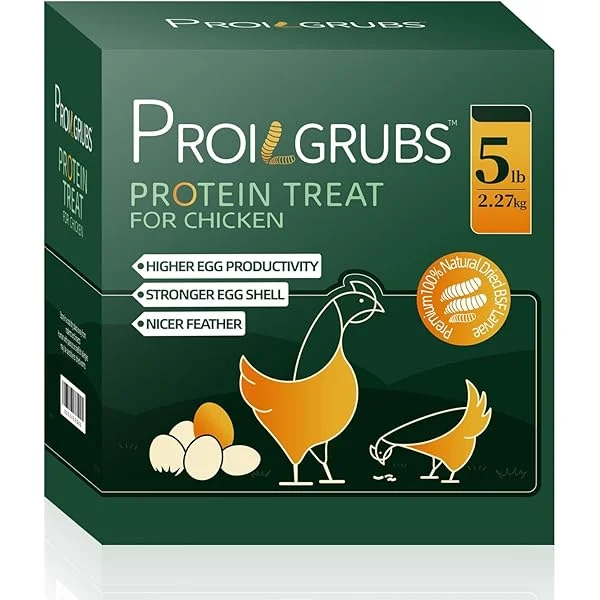 PROILGRUBS 5 LBS All Natural Dried Black Soldier Fly Larvae Treats- Non-GMO-Dried Grubs for Chickens - Dried Meal Worms for Chickens, Hens, Birds 5 Pound (Pack of 1)
